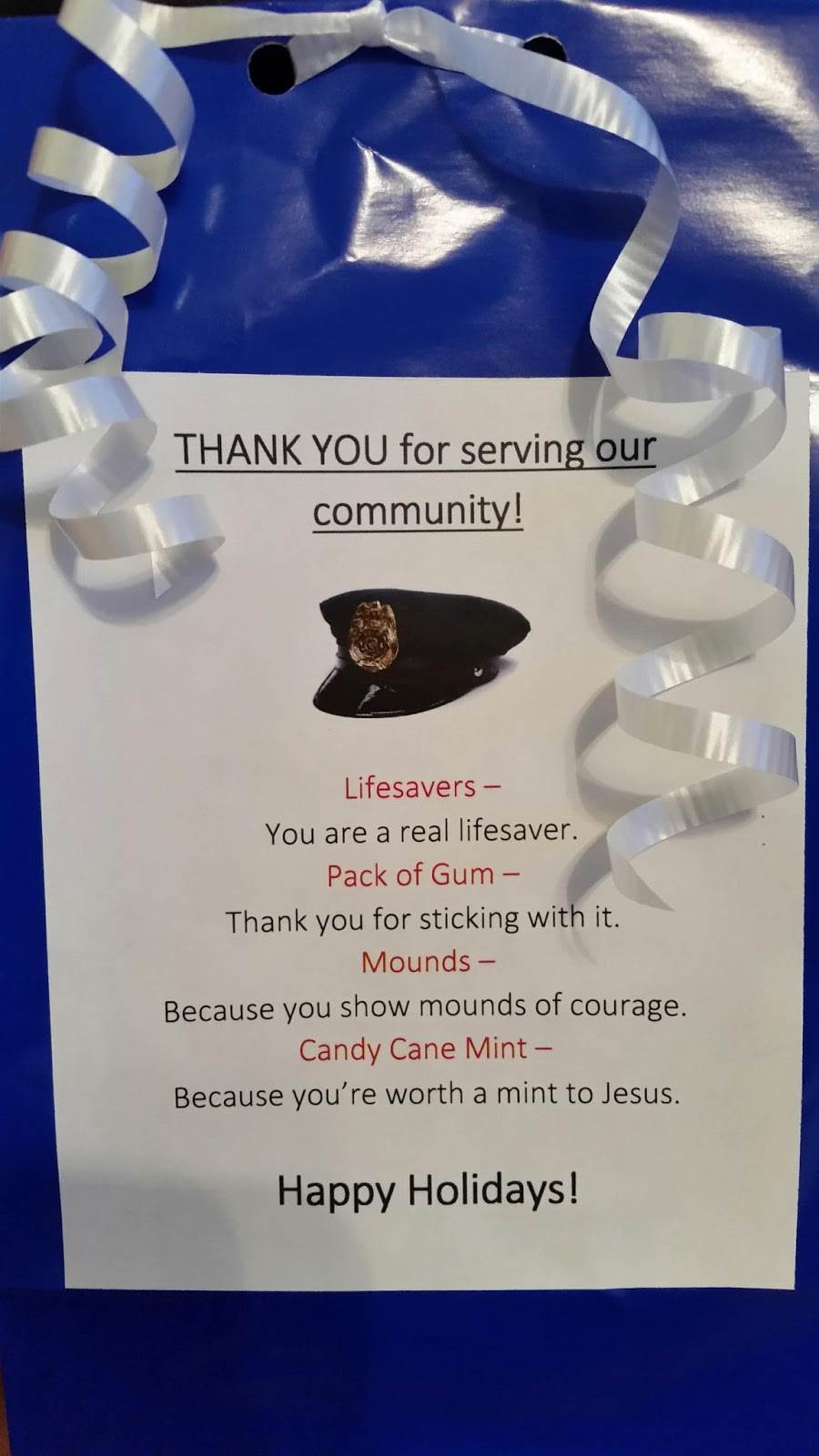 A friend texted me last week and was looking for some goodie bag thank you ideas for Adventurers to give to Policemen and Firemen during the holiday season. This is what I came up with!