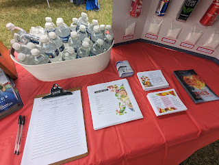 The highlight of the physical health table was the Rethink Your Drink board that we put together. It shared typical American drinks and how much sugar each one contains. They could also sign up for info on our upcoming health classes and take home lots of info to read about a variety of aspects on physical health. Free water was also a huge hit as it was a very hot day!